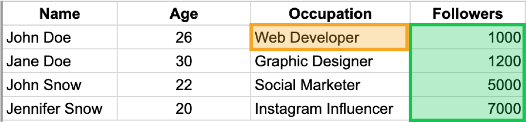 Your Google Spreadsheet must be divided into titled columns like so: